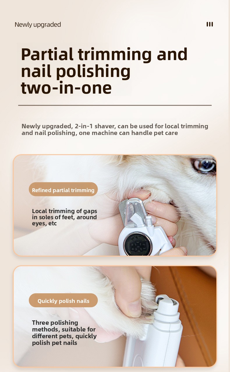 Electric Pet Nail Grinder - 2-in-1 trimming and grinding for cats and dogs.